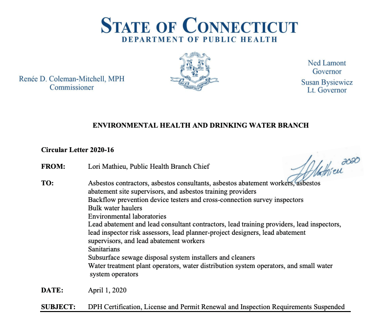 Renewal of certification, licenses and permits is suspended for DPH licensees in a number of disciplines, including all asbestos and lead disciplines. Any certification or license not renewed by the…